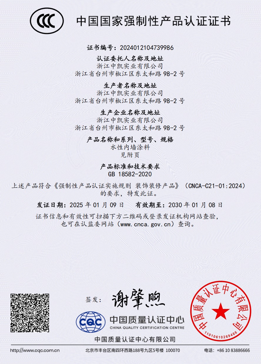 浙江中凱實業(yè)有限公司是一家由美國杜邦涂料化工集團有限公司提供高新技術,與美國杜邦化工集團有限公司授權在中國生產(chǎn)各種建筑涂料的制造企業(yè)。